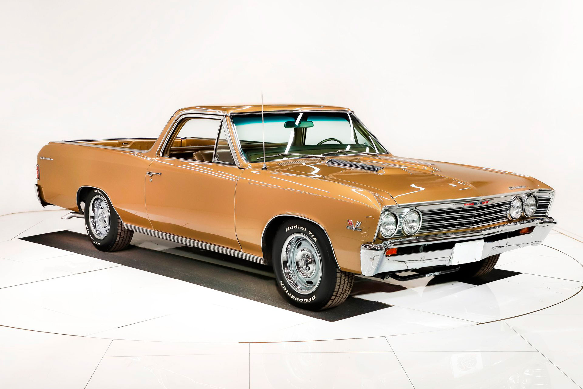 1967 Chevrolet El Camino 396Details Engine Size: 396-325 HP Transmission Type: Turbo 400 Auto Miles: 87573 Body Style: Pickup Truck Body Colour: Grenada Gold Stock #: 710 VIN: 136807B127055
